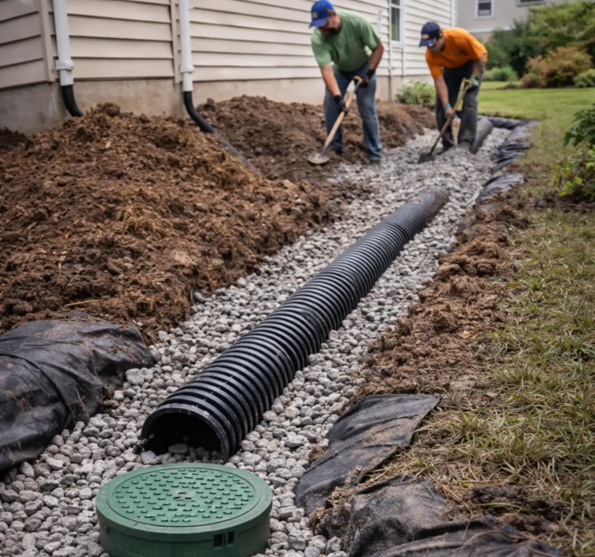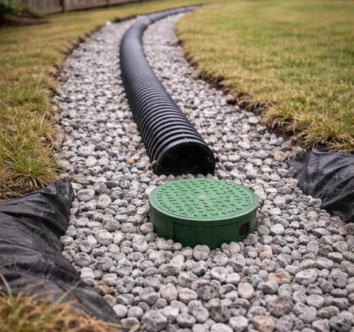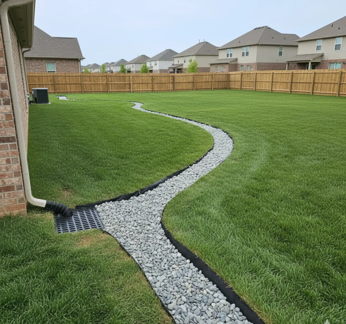 We don’t just dig a shallow trench and hope for the best. We design full drainage systems – French drains, downspout tie‑ins, grading, swales, and dry creek beds – that are tailored to your yard, your foundation, and your water issues.